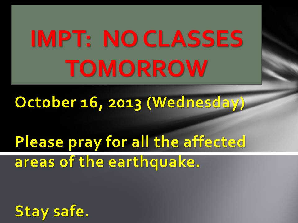 IMPT: NO CLASSES TOMORROW