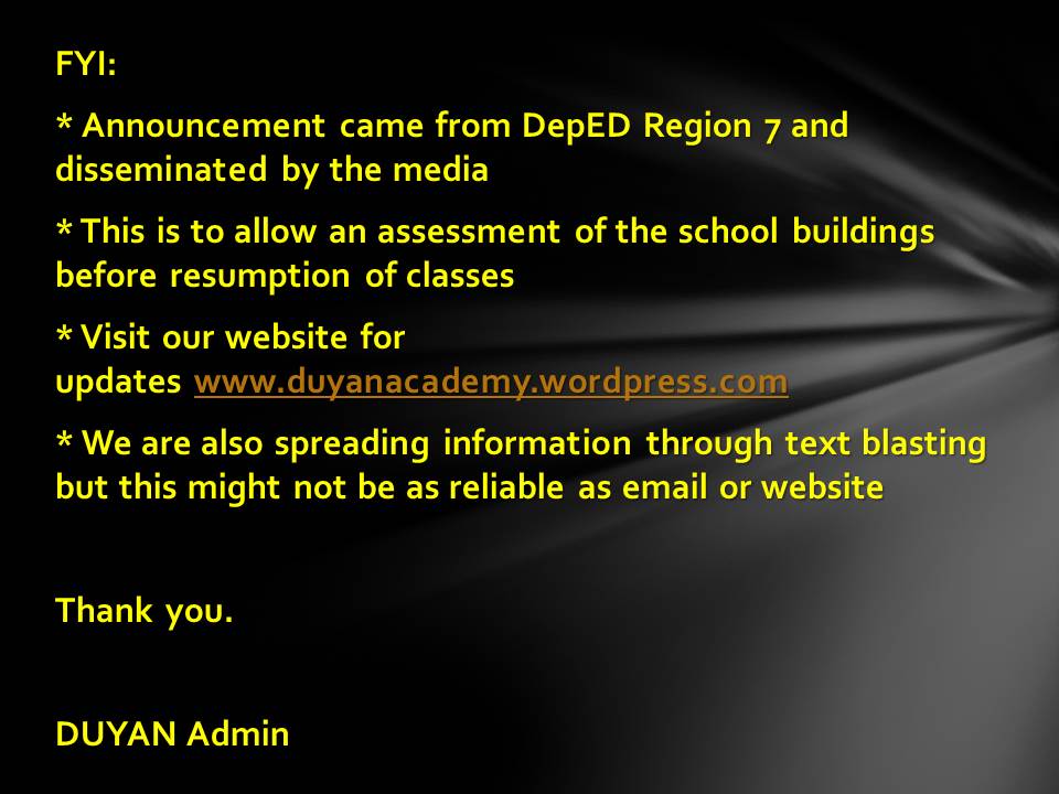 * Visit our website for updates www.duyanacademy.wordpress.com
